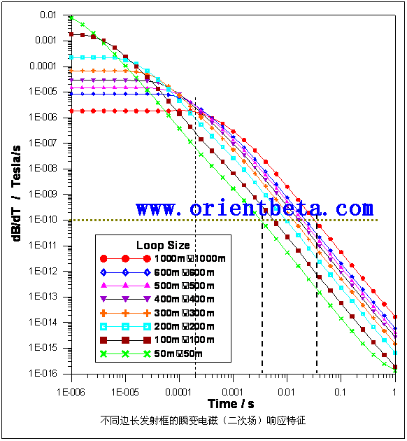 误区1:小框的早期信号好,施工又方便,只要记录足够长的时间,就能够探测足够大的深度。这是不对的。实际上,在一般噪音水平下,目前的仪器系统只能记录到强度大于10-10特斯拉/秒左右的信号,
